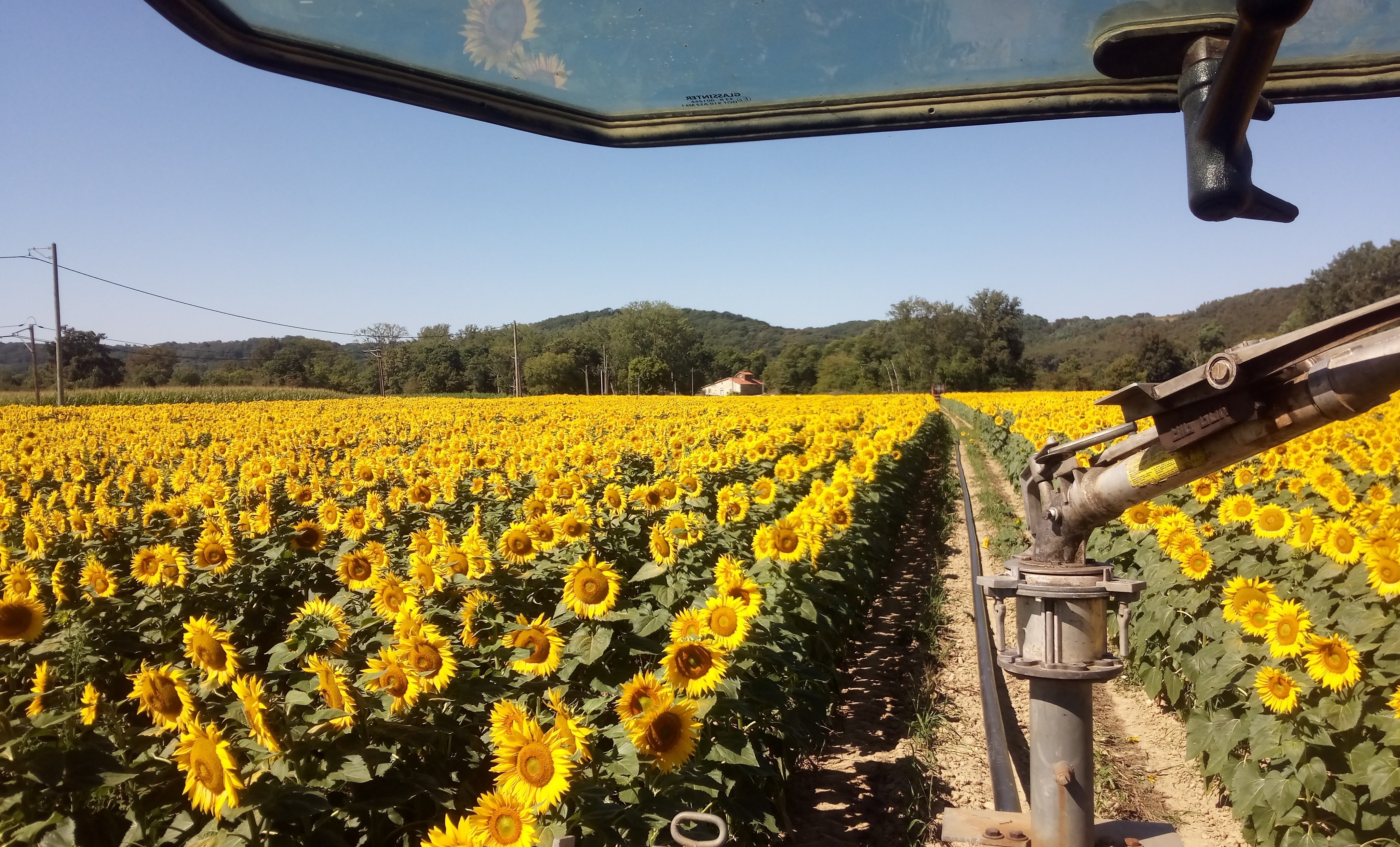 Semis de colza, 31 aout 2024Tournesol prêt à recevoir son tour d’eau, 9 aout 2024Les bouteilles d’huiles de tournesolEnclos d’agnelage, 5 décembre 2023